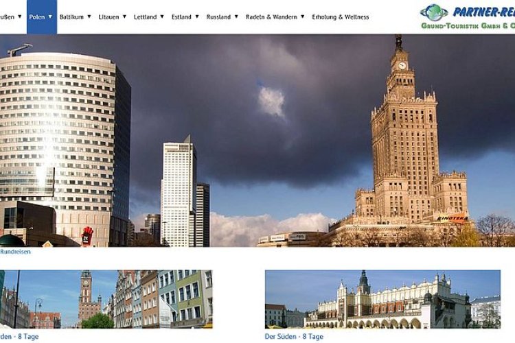 Das Unternehmen Partner-Reisen Grund Touristik GmbH&Co. Kg besteht auf zwei großen Sparten. Zum einen werden individuelle Pauschalreisen nach Ost-Europa angeboten, zum anderen geführte Busreisen in ganz Europa.